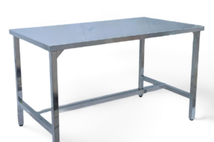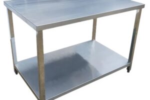 Mặt bàn: Làm bằng inox 304 hoặc inox 201 tùy mục đích sử dụng. Bề mặt phẳng, sáng bóng, chống ăn mòn, chịu được hóa chất và nhiệt độ cao. Một số loại có viền gấp mép để tăng độ cứng và đảm bảo an toàn khi thao tác.